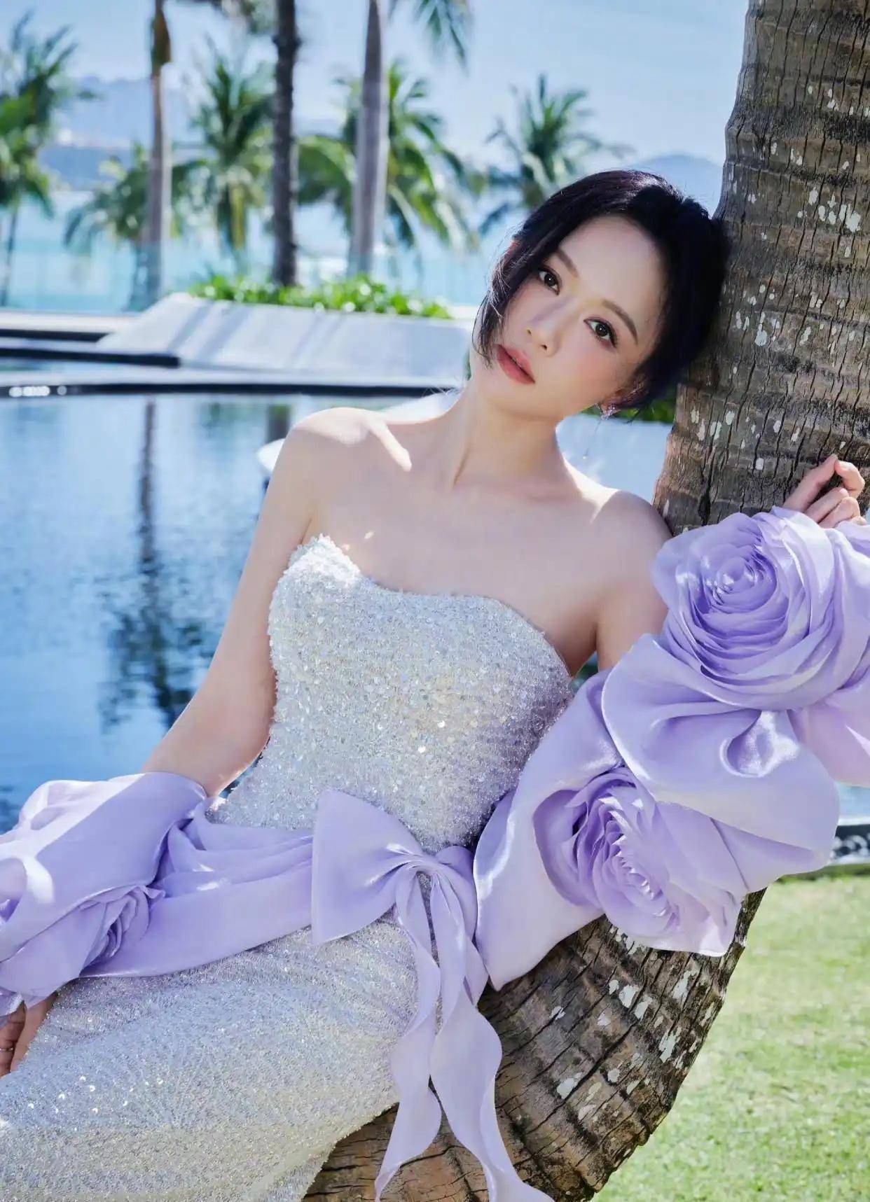 从照片细节来看,这套造型确实可圈可点。抹胸设计露出精致肩颈线条,勾勒出优美的锁骨;裙身的垂坠感面料贴合身形,既能凸显身材曲线,又不会过于紧绷;紫色披肩的加入则增添了层次感和梦幻色彩,整体氛围优雅浪漫。不得不说,陈乔恩在穿搭方面一直有自己的独特风格,无论是新中式风格还是休闲风,都能驾驭得恰到好处。能轻松驾驭这样的造型,离不开陈乔恩常年的自律。她体重常年保持在标准范围,并非通过极端节食,而是找到享受与克制之间的平衡点,同时保持定期运动的习惯。自2003年起,她坚持早上五点起床,空腹有氧运动40分钟,即使拍夜戏也不忘带瑜伽垫进行拉伸。这种自律让她在46岁的年纪依然保持着良好的状态。